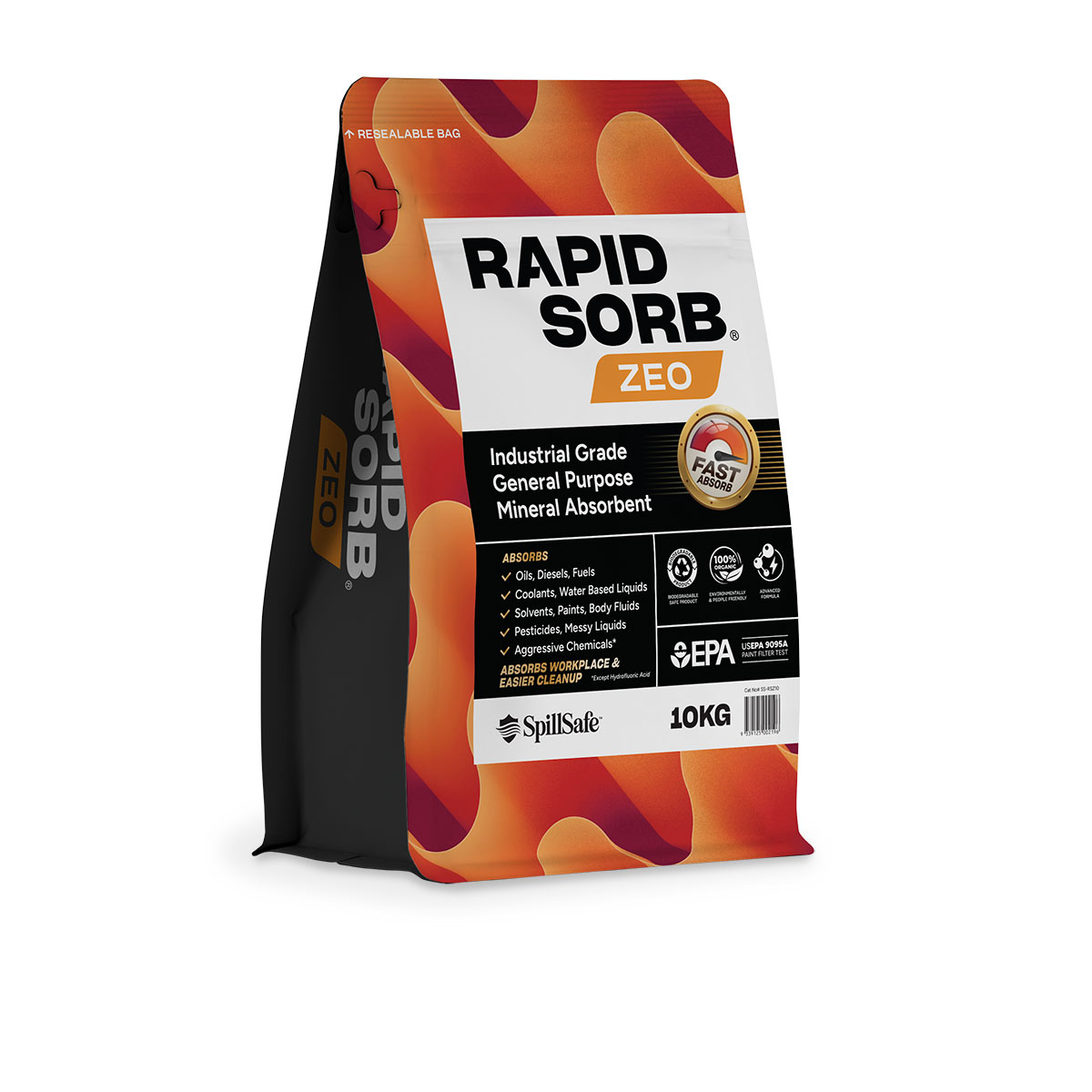 SpillSafe RapidSweep ZEO 10kg Absorbent is an extra heavy duty industrial grade general purpose absorbent particulate. RapidSweep ZEO offers fast absorption of a wide range of fluids, including oils, fuels, water based liquids, body fluids, paints, solvents, and aggressive chemical liquid spills.